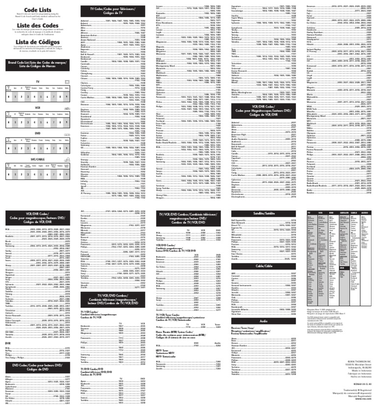 Universal Remote Control Codes List Tv Sat Dvr