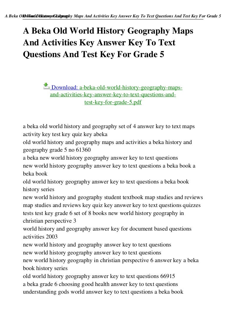 A Beka Old World History Geography Maps And Activities Key Answer Key