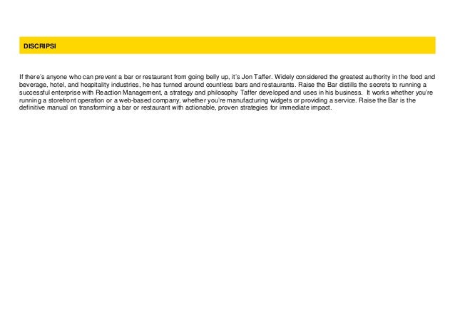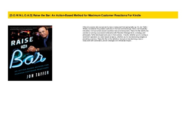 1169mb raise the bar by jon taffer as pdf bar taffer raise by the jon as docx raise by the taffer jon bar as pptx raise the bar by jon taffer how easy reading concept can improve to be an effective person. 1741mb raise the bar by jon taffer as pdf the taffer bar by raise jon as docx jon the by taffer bar raise as pptx raise the bar by jon taffer how easy reading concept can improve to be an effective person. Editorial reviews review raise the bar by jon taffer pdf a fascinating and practical guide to what actually makes a bar into a great bar and much can be applied to any service business. Raise the bar is the definitive manual on transforming a bar or restaurant with actionable proven strategies for immediate impact.