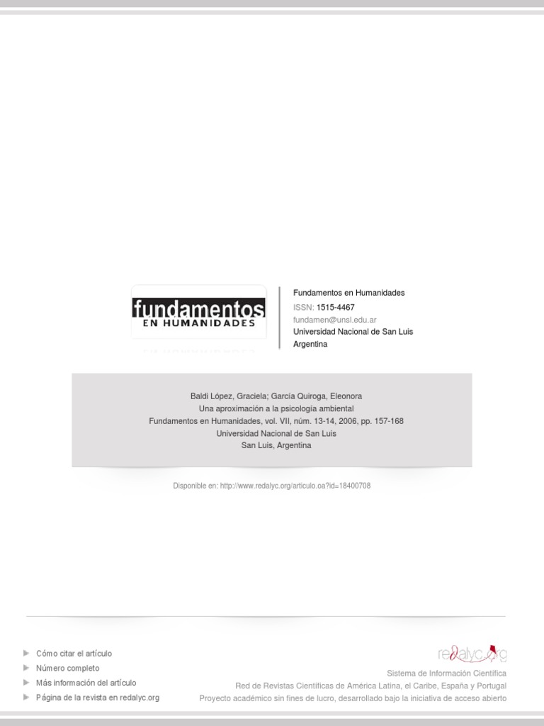 Redalyc Calidad De Vida Y Medio Ambiente La Psicologa Pdf