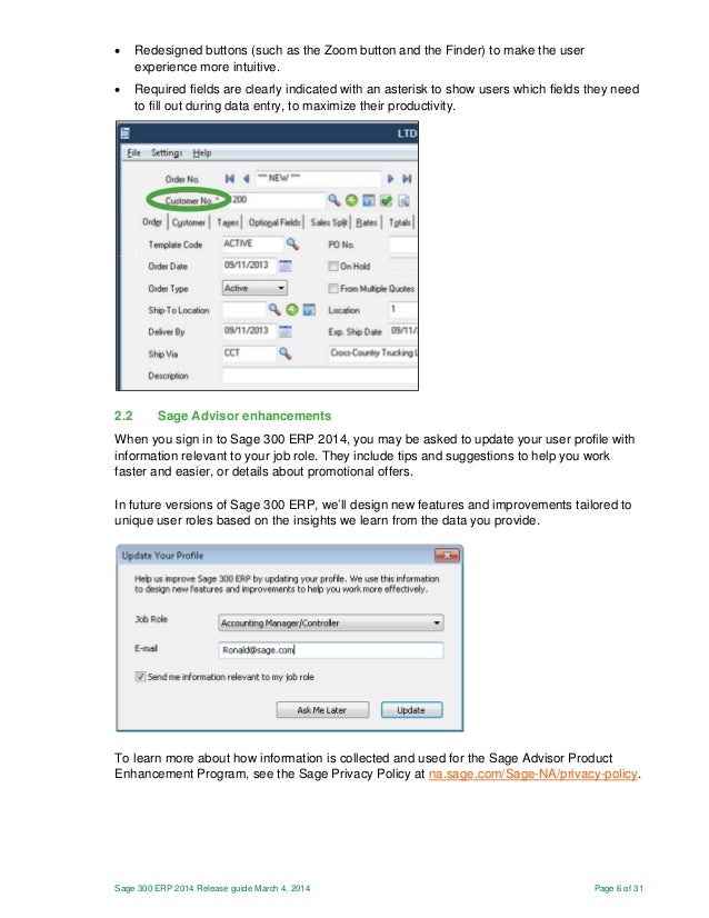 Changes in sage 300 60 product update 1. Important information about sage 300 60 including product changes that are not in the documentation.