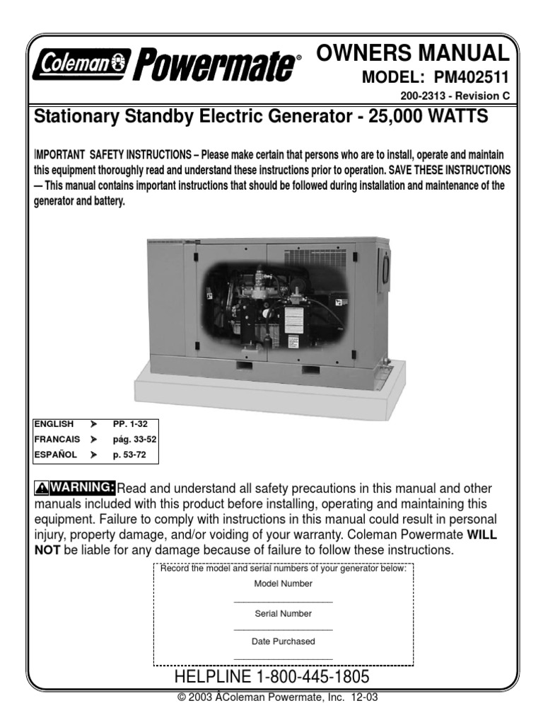Http Www Nooutage Com Pdf Colemanpowermate Pm401211 Pm400911 Manual Pdf