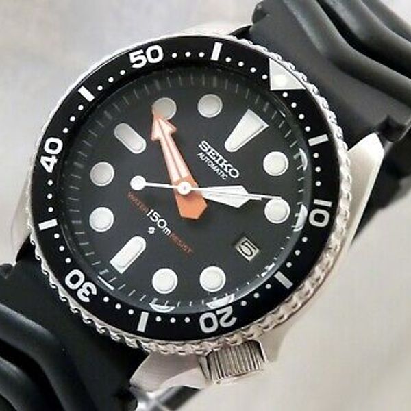 The number on the case back shows that this watch is from 1992. Seiko analogue divers watch cal. From a distance this seiko looks like a watch from that swiss top brand. The white dial has black.