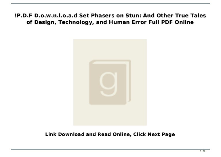 Set Phasers On Stun Other True Tales Of Design Technology Human Error Pdf