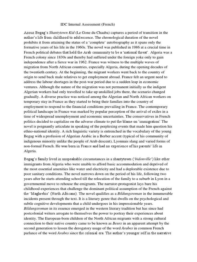 Refugees in chaaba a french shantytown they face the hard learning of integration. A new political essay. Shantytown kid is a bildungsroman chronicling begags childhood growing up in the titular shantytown situated on the outskirts of lyon his experience in the french education system and his identity as muslim and a second generation algerian immigrant known in french as a beur. I do not wish to denigrate this honorable craft in any way.