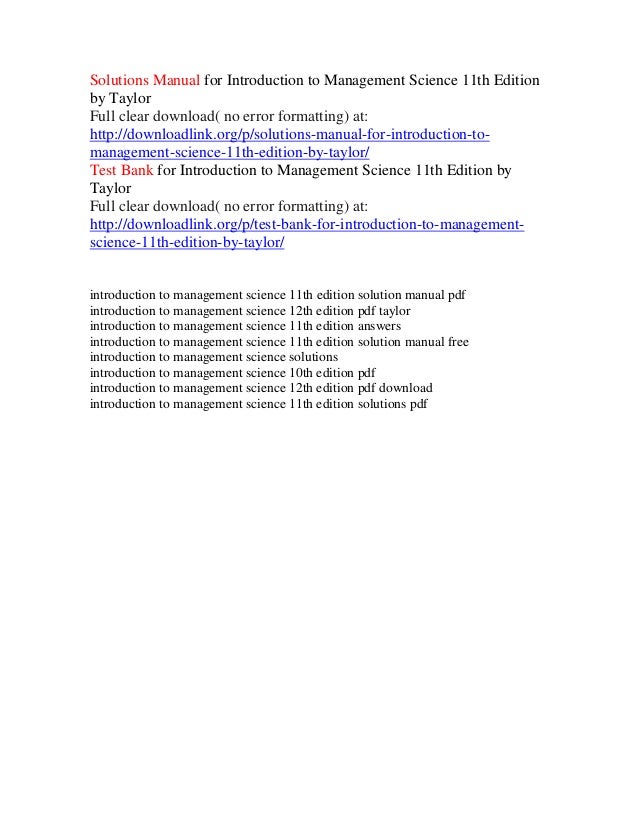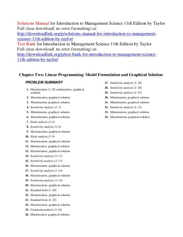 Solutions Manual For Introduction To Management Science 11th Edition