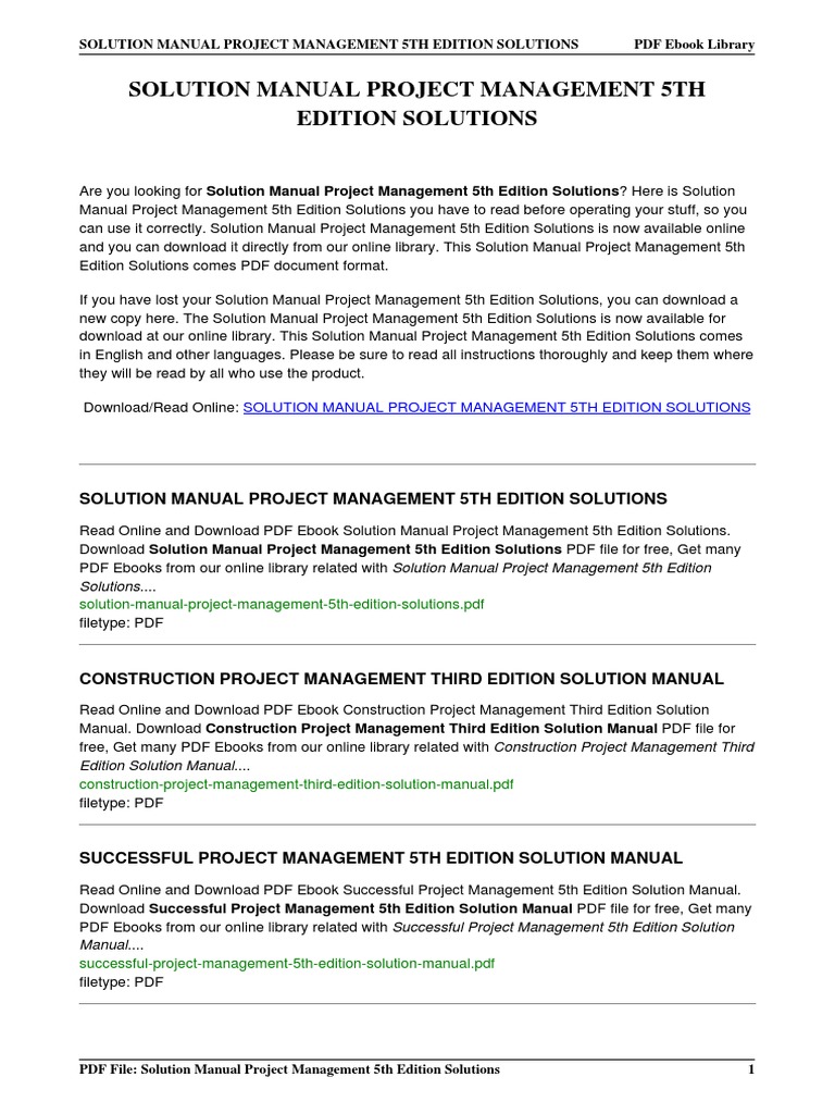 Solution manual project management 5th edition solutions pdf. Solution manual for project management 7th edition by larson httpstestbanku. Project management processes methodologies and economics by shtub bard globerson 2 instructors solutions manual psychology the science of mind and behavior by passer smith 5 test bank psychology frontiers and applications fourth canadian edition by passer 4 test bank. Pdf file of successful project management 5th edition solution manu. As understood execution does not recommend that you have fantastic.