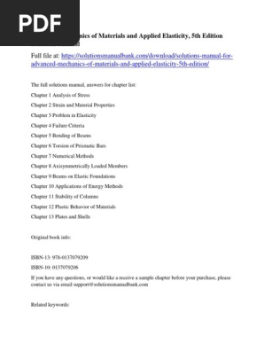 Advanced Mechanics Of Materials And Applied Elasticity 5th Edition Solutions Manual Strength Of Materials Elasticity Physics