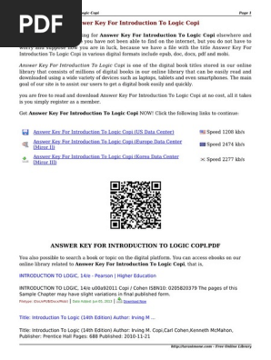 Copi introduction to logic 4th edition solutions to exercises free download as pdf file pdf text file txt or read online for free. So depending on what exactly you are searching you will be able to choose ebooks to suit your own needs. Copi book name.