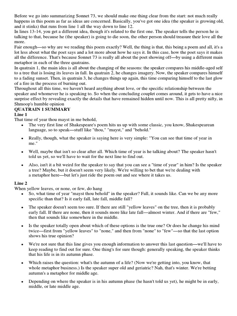 Sonnet 73 Assignment Name Section Sonnet 73 William Shakespeare